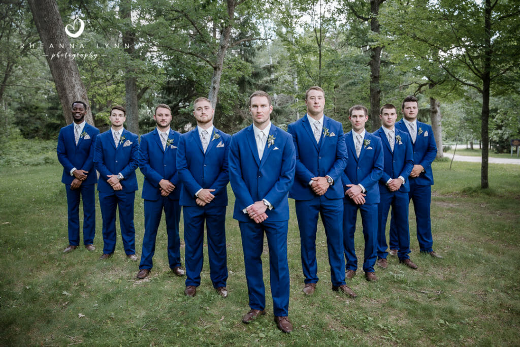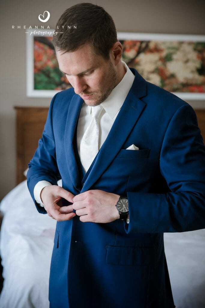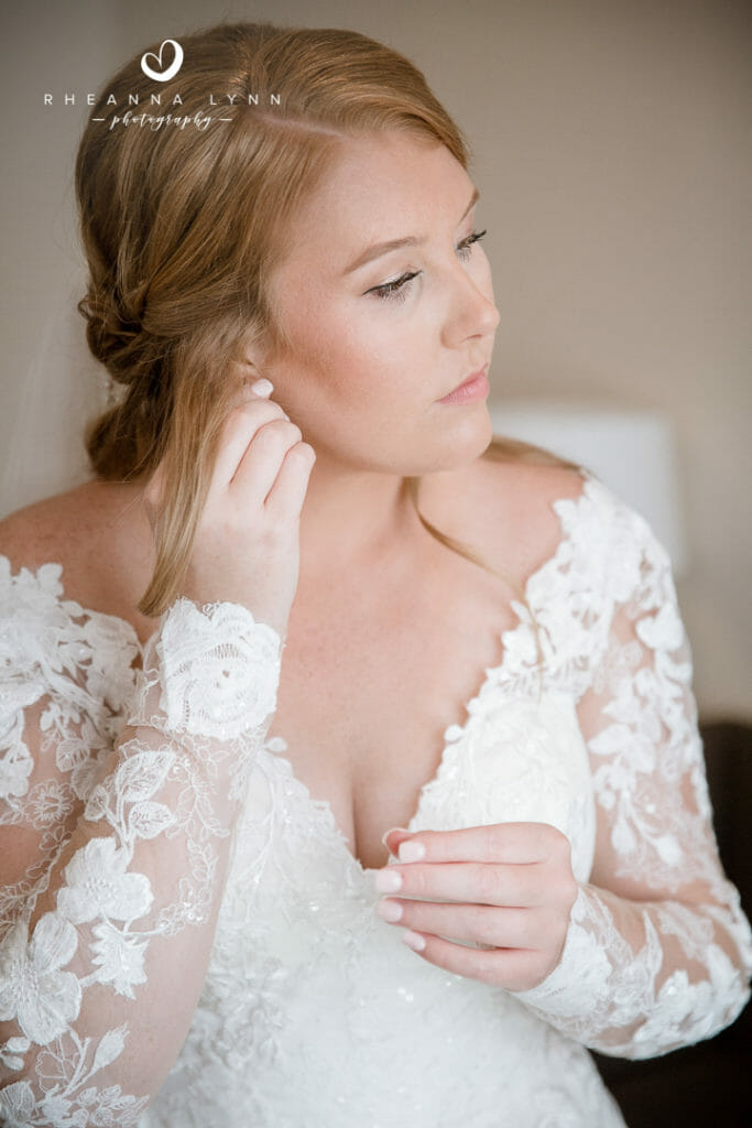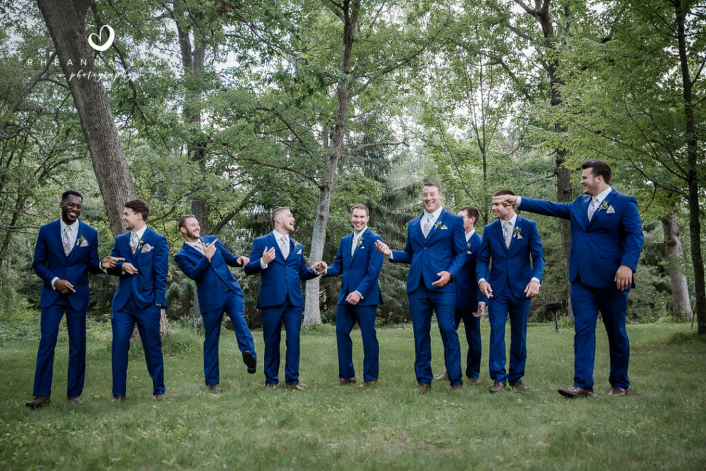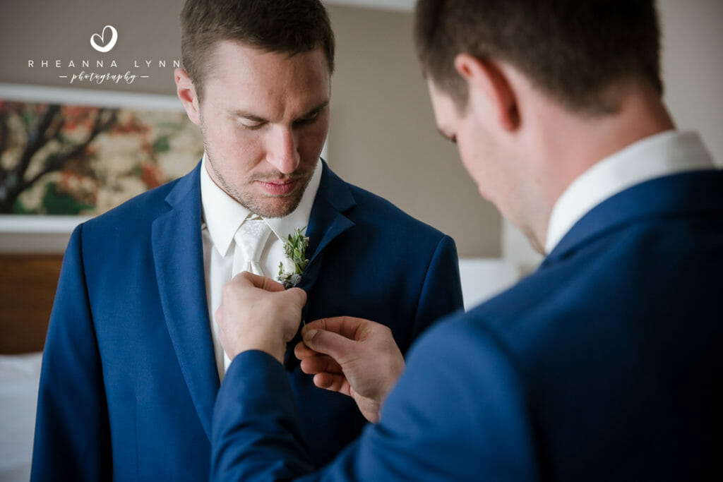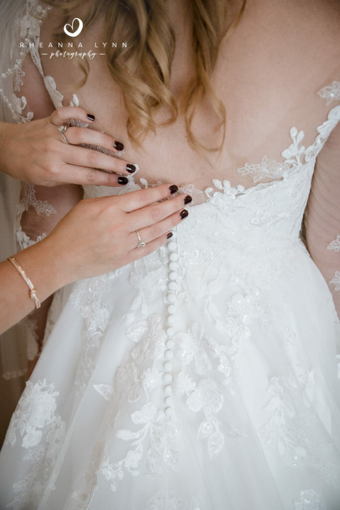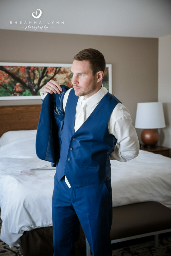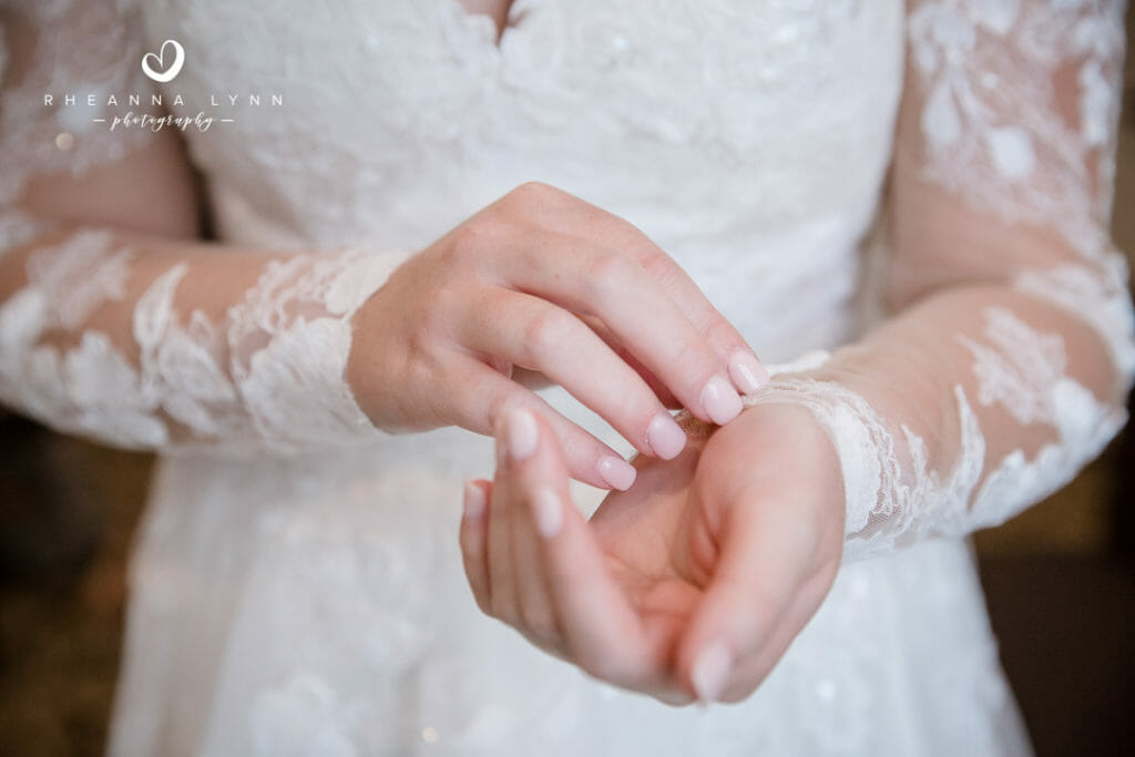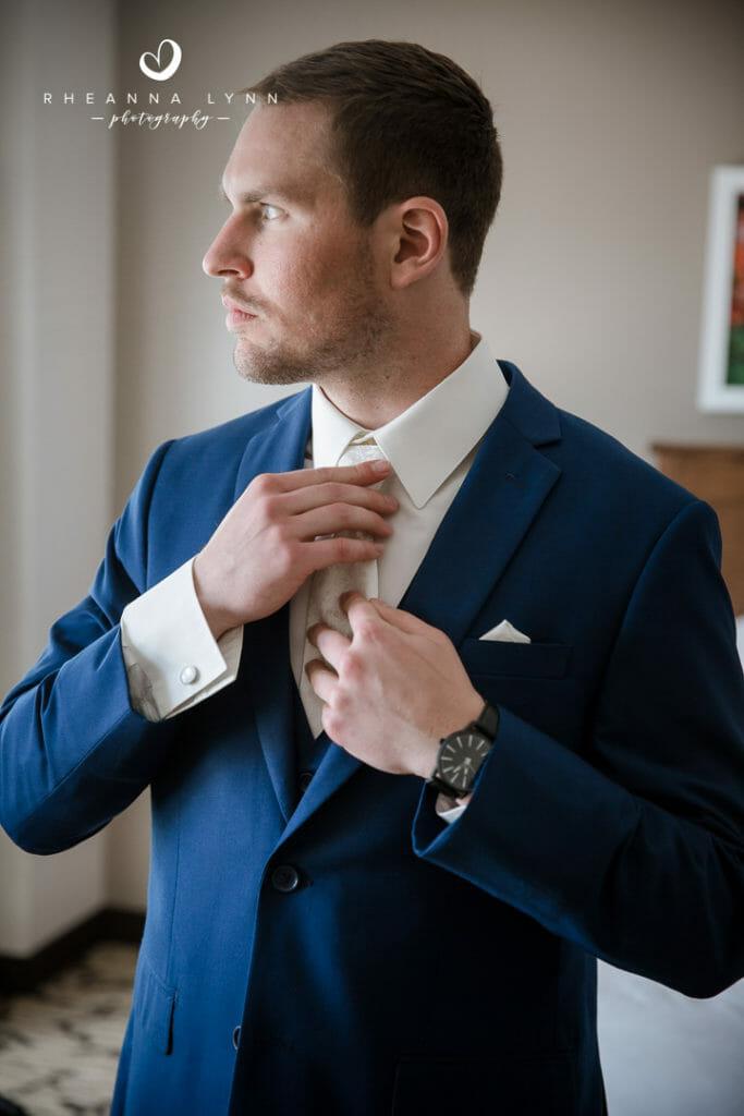 Their day arrived and it couldn’t have been more beautiful! It was a perfect summer day with big blue skies above us; not too hot, not too humid. I started off at the Holiday Inn where the ladies were busy getting ready. A few of the girls were finishing up at the salon around the corner as Karina was working on her final touches. I worked on the carefully selected details for their day as the ladies giggled in the background. I made it over to the guys, (whom were lookin’ so dapper in their blue suits) to capture Logan’s final details before heading back to the ladies where Karina slipped into her gown surrounded by her besties.