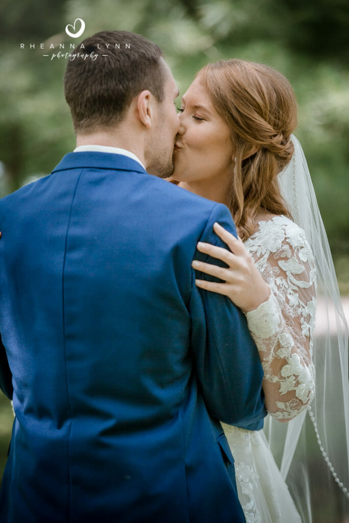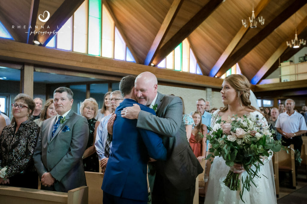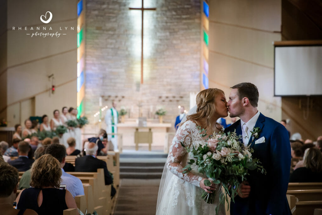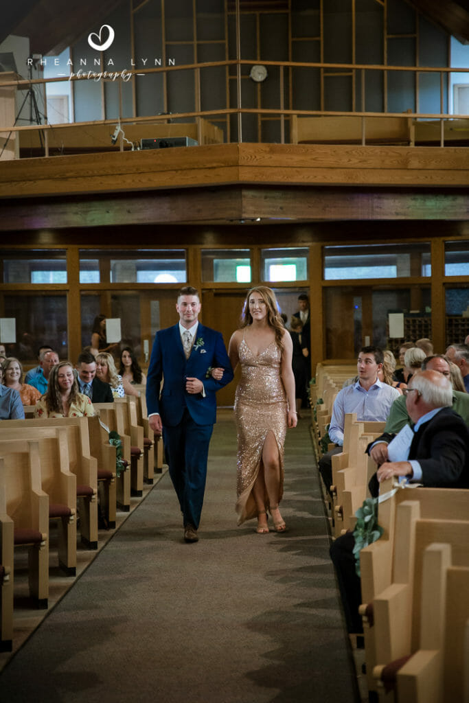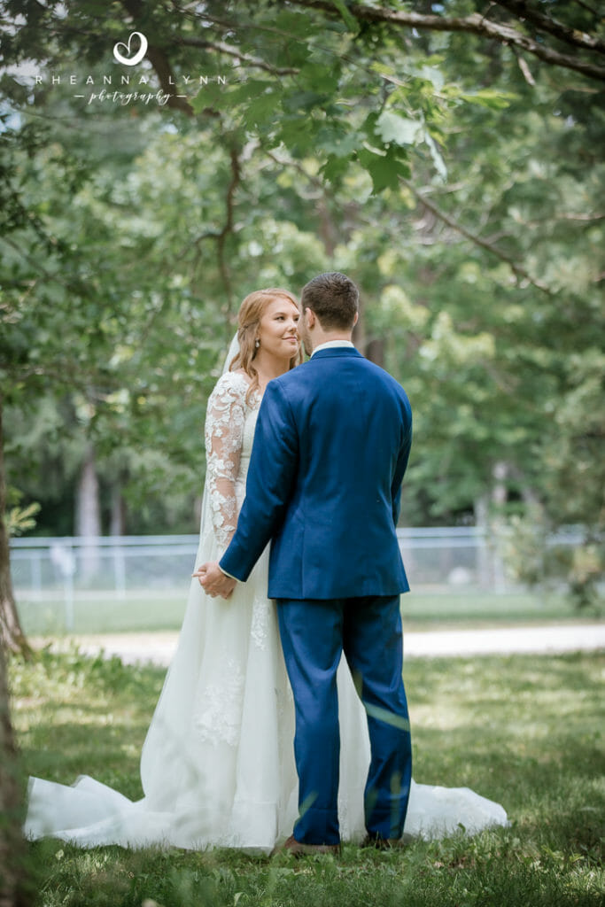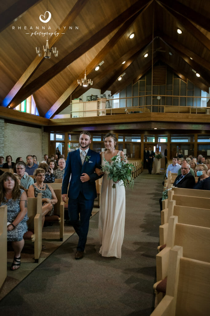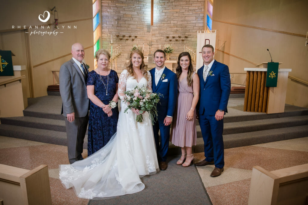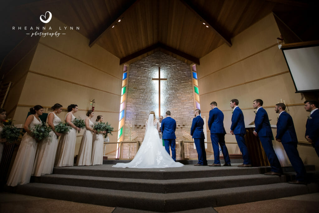 Logan and Karina opted to share an intimate first look before their ceremony. We went out to Lake Emily for a beautiful forested backdrop and pristine lake. They shared a lovely and intimate moment together, a sweet and romantic bridal session, before inviting the bridal party off of the bus for some fun photos. We stopped by the lake for a few quick photos (these are some of my absolute faves- look at Karina in her gown!!!) before heading out over rolling hills and farm fields to their church in Manawa.