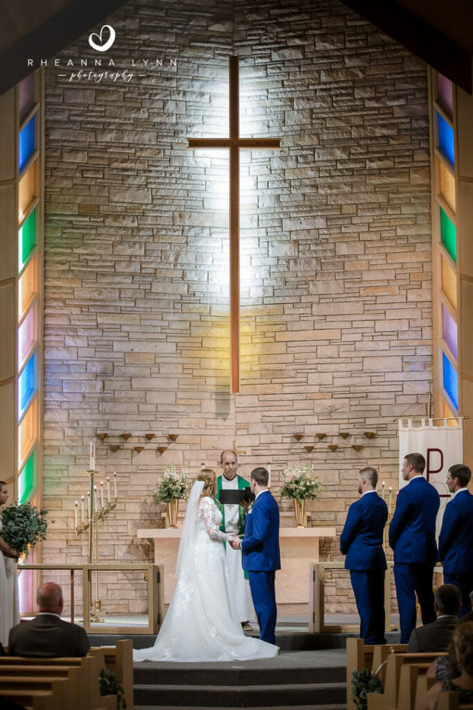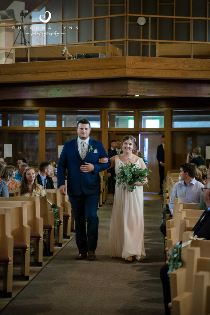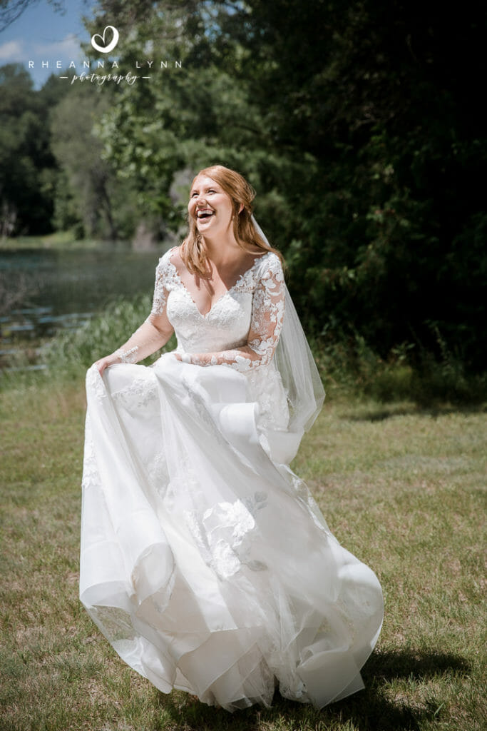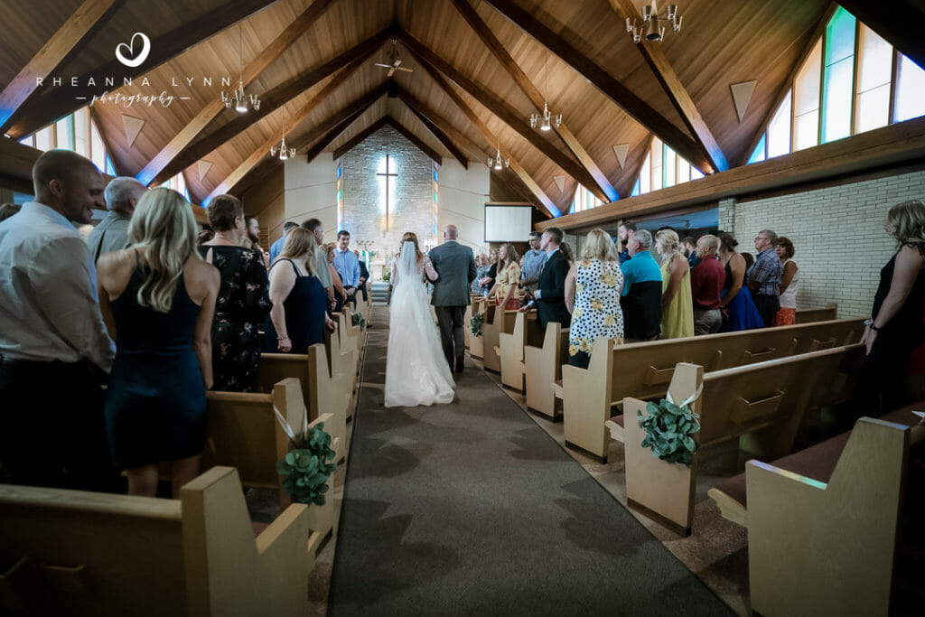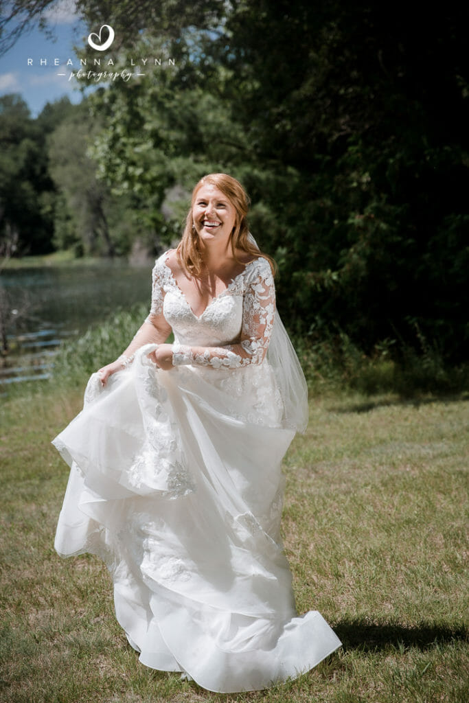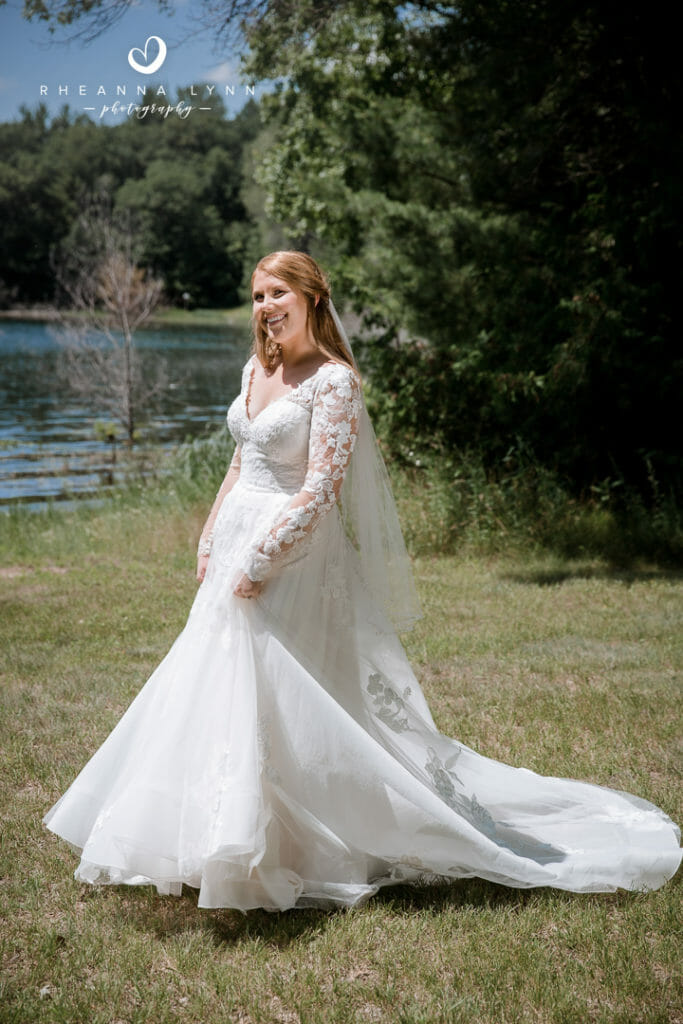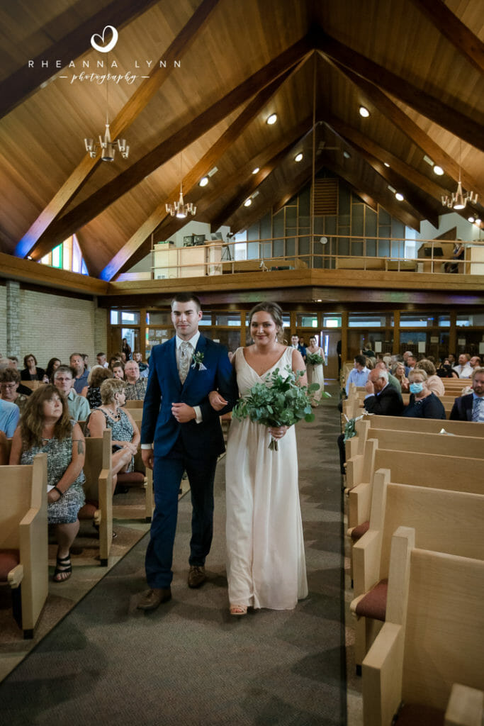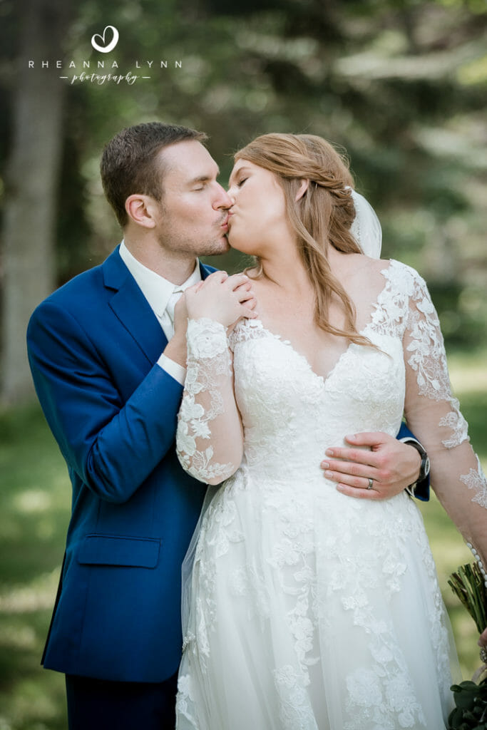 Logan and Karina opted to share an intimate first look before their ceremony. We went out to Lake Emily for a beautiful forested backdrop and pristine lake. They shared a lovely and intimate moment together, a sweet and romantic bridal session, before inviting the bridal party off of the bus for some fun photos. We stopped by the lake for a few quick photos (these are some of my absolute faves- look at Karina in her gown!!!) before heading out over rolling hills and farm fields to their church in Manawa.