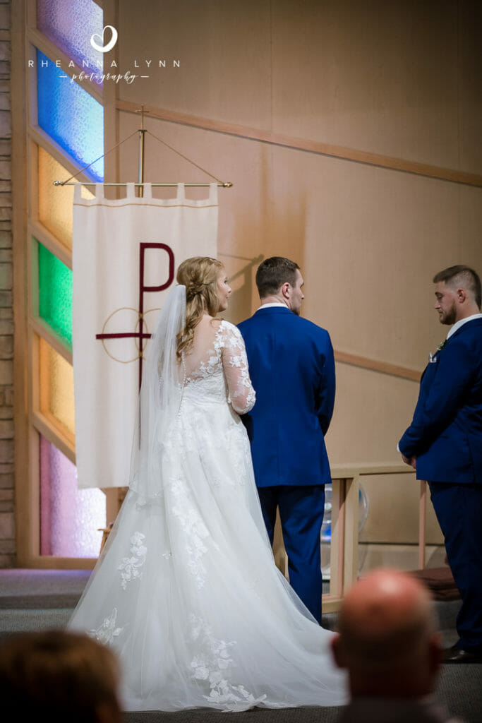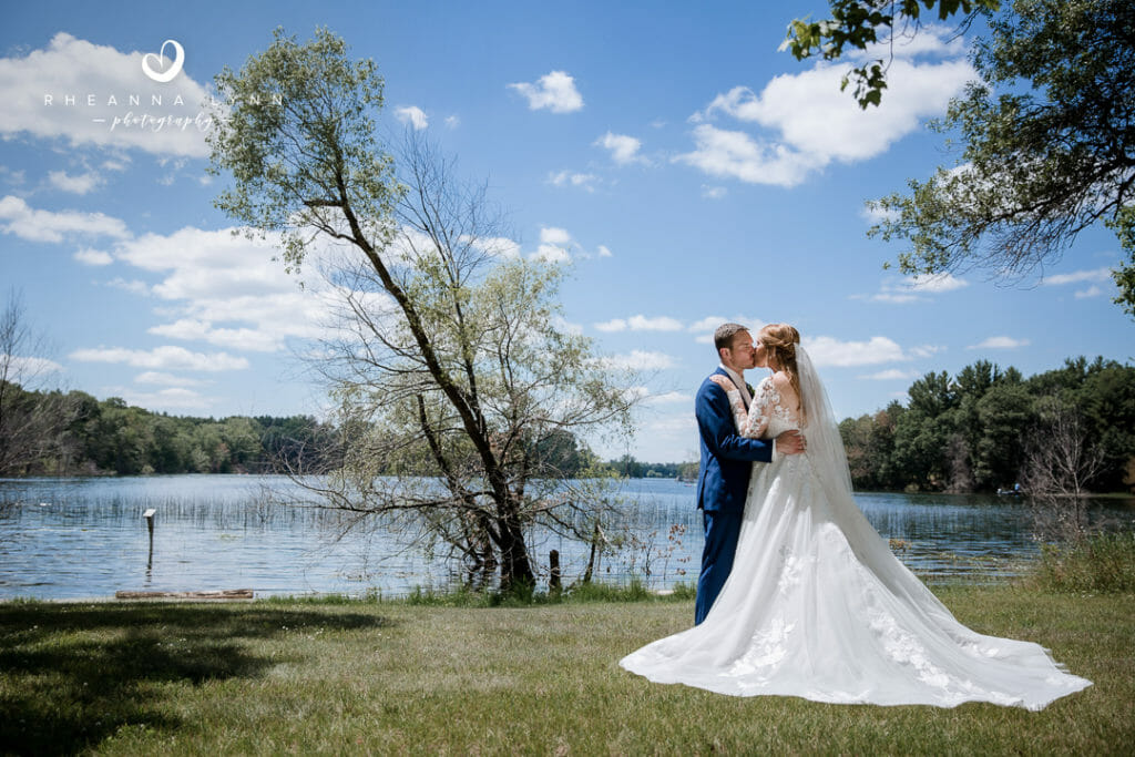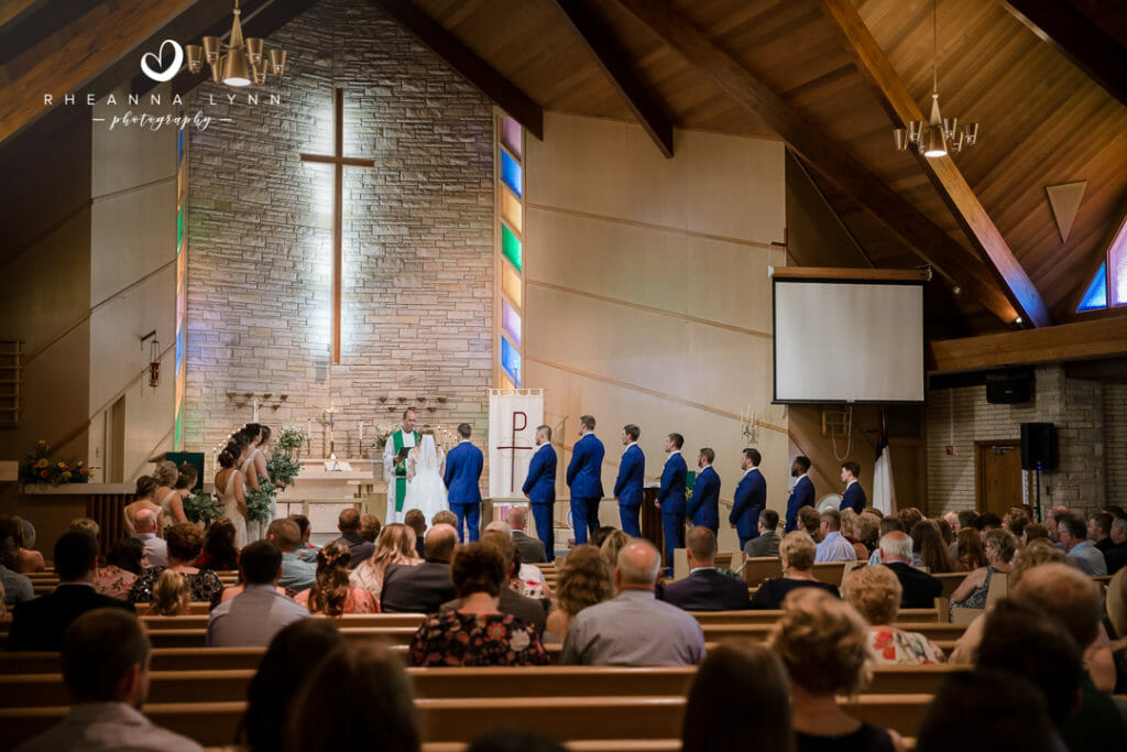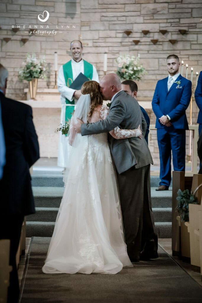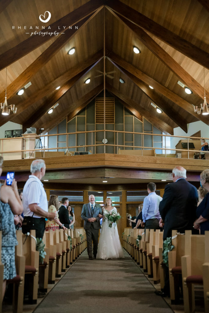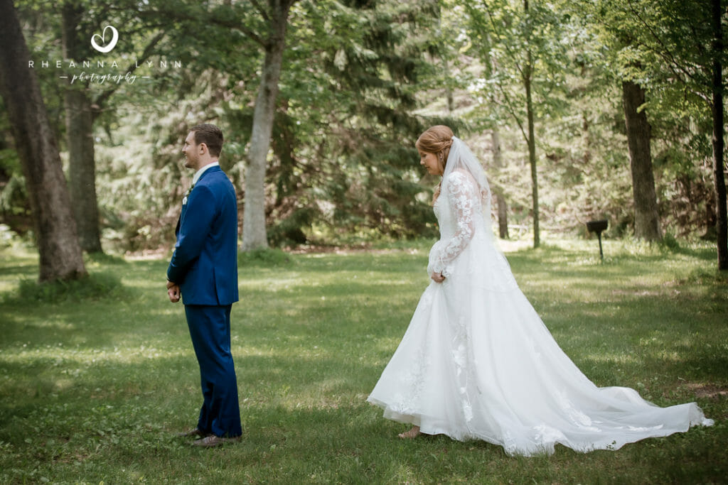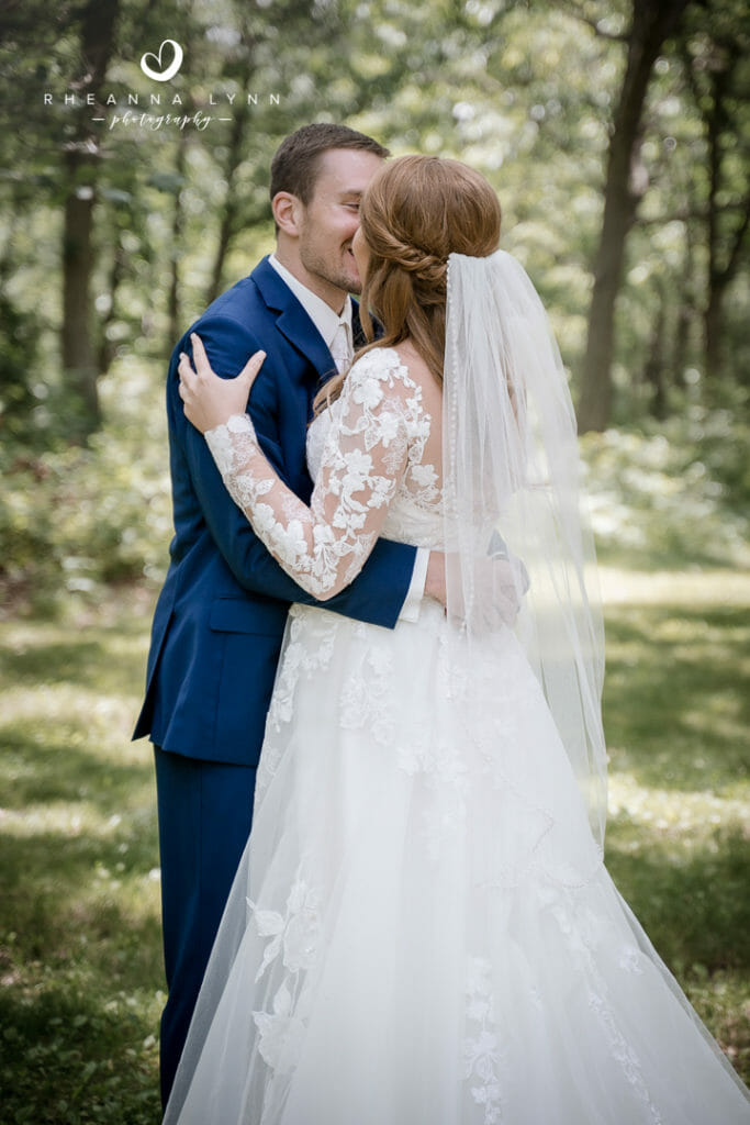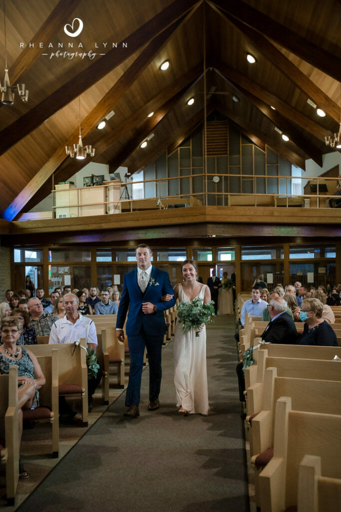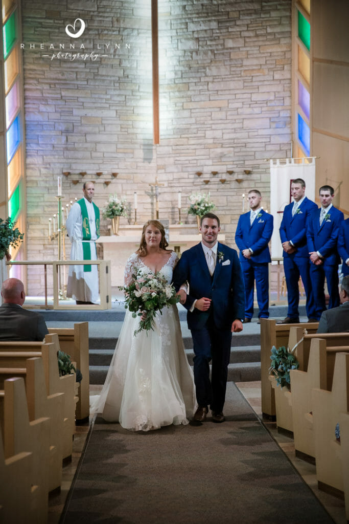 Logan and Karina opted to share an intimate first look before their ceremony. We went out to Lake Emily for a beautiful forested backdrop and pristine lake. They shared a lovely and intimate moment together, a sweet and romantic bridal session, before inviting the bridal party off of the bus for some fun photos. We stopped by the lake for a few quick photos (these are some of my absolute faves- look at Karina in her gown!!!) before heading out over rolling hills and farm fields to their church in Manawa.