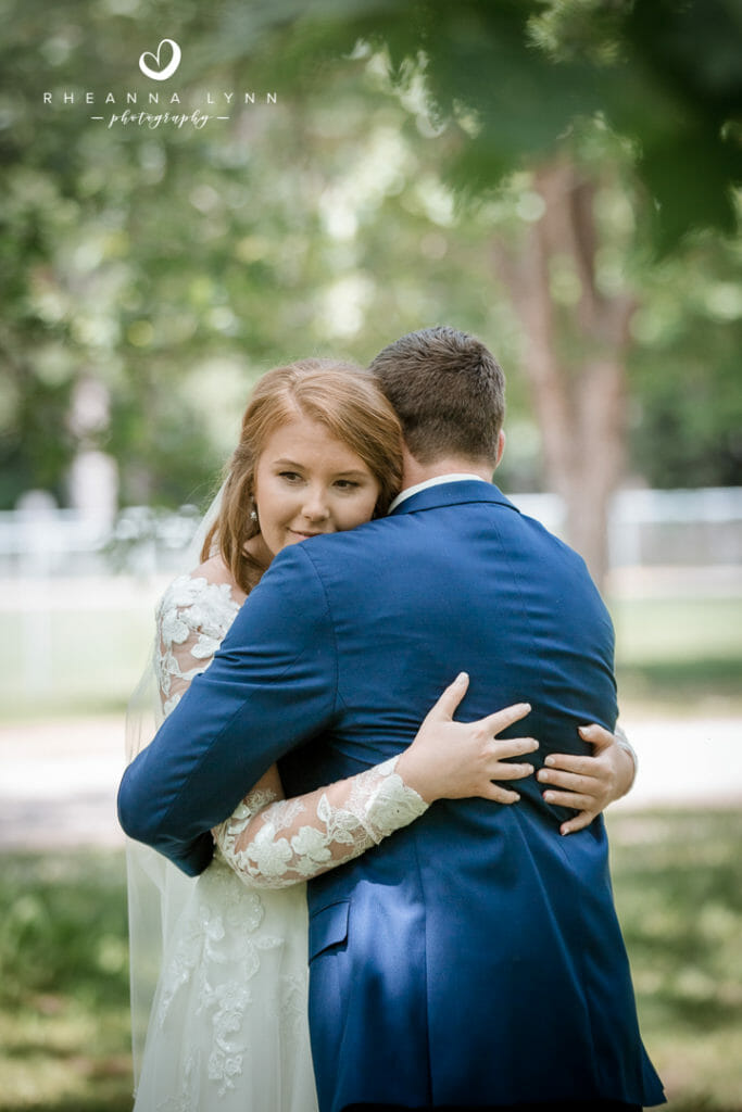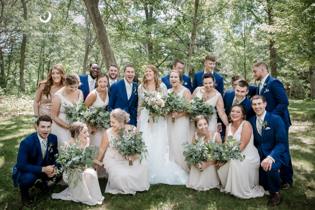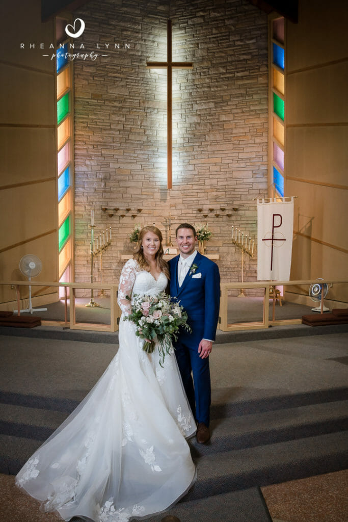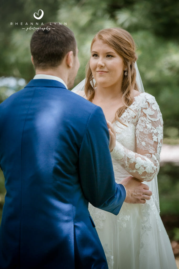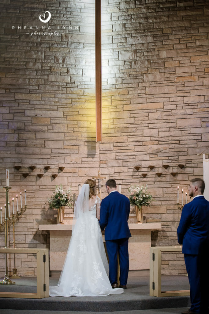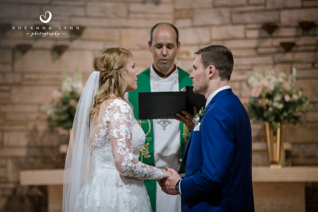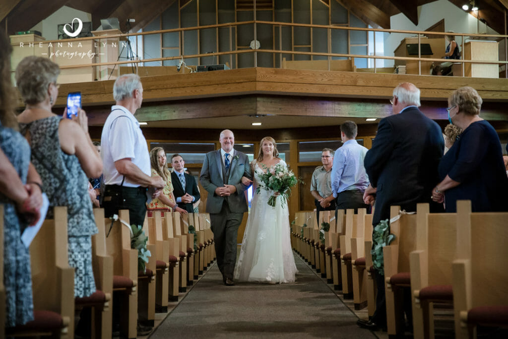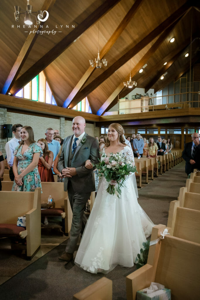 Logan and Karina opted to share an intimate first look before their ceremony. We went out to Lake Emily for a beautiful forested backdrop and pristine lake. They shared a lovely and intimate moment together, a sweet and romantic bridal session, before inviting the bridal party off of the bus for some fun photos. We stopped by the lake for a few quick photos (these are some of my absolute faves- look at Karina in her gown!!!) before heading out over rolling hills and farm fields to their church in Manawa.