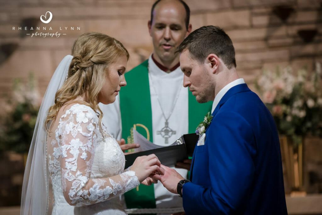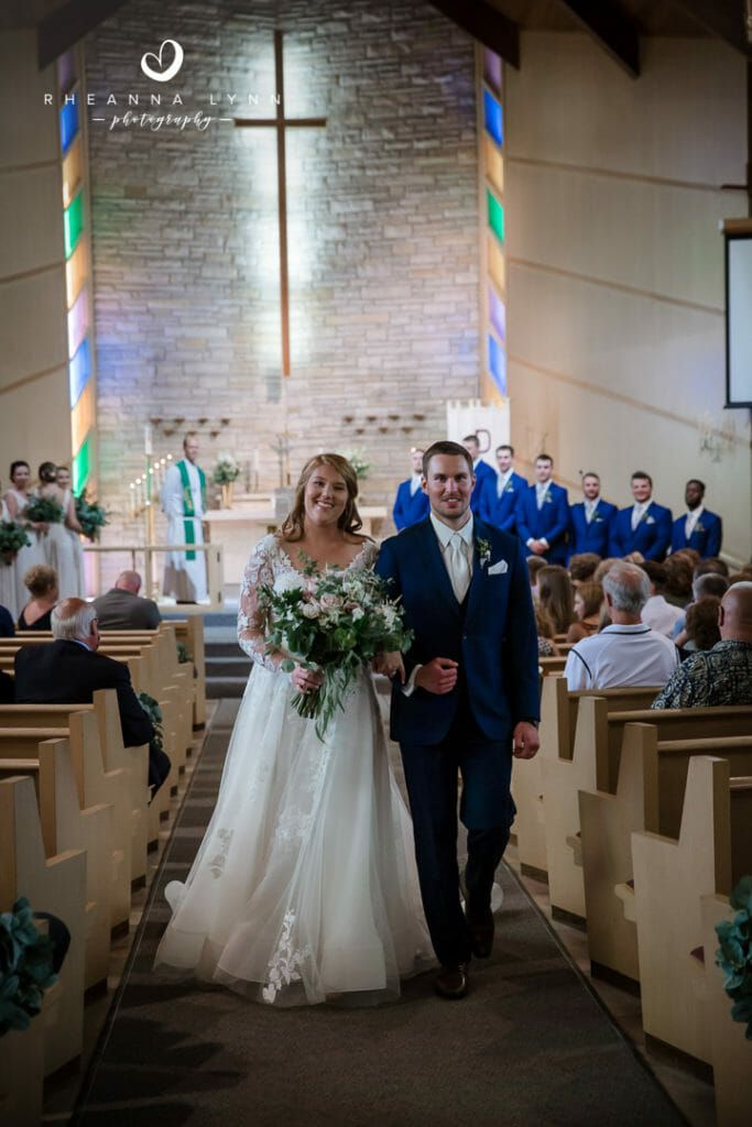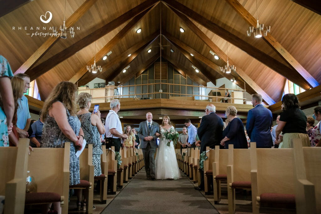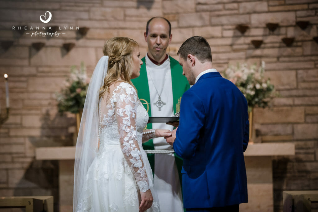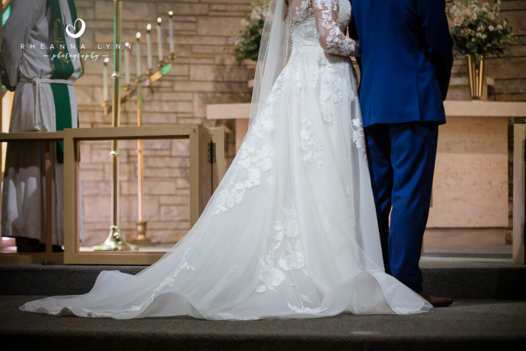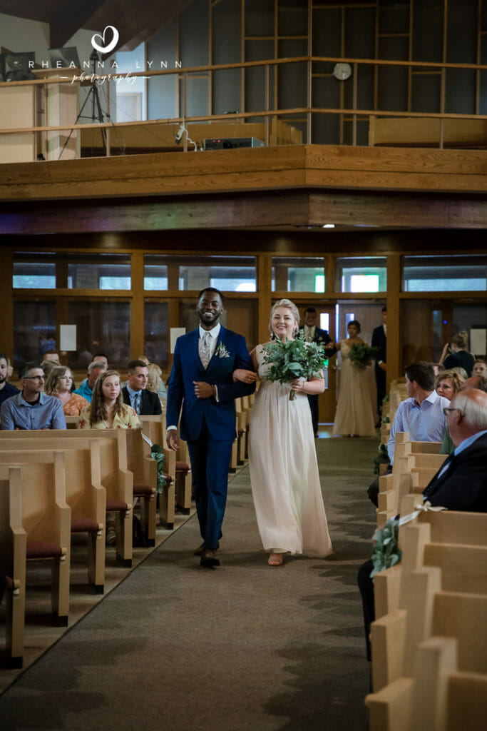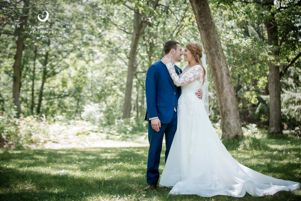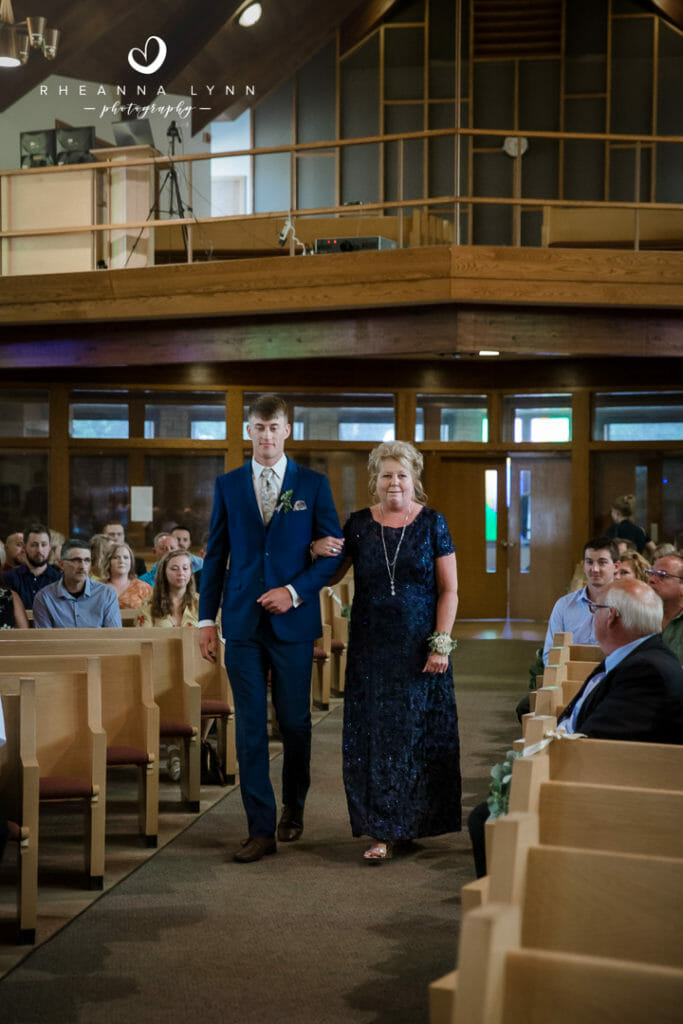 Logan and Karina opted to share an intimate first look before their ceremony. We went out to Lake Emily for a beautiful forested backdrop and pristine lake. They shared a lovely and intimate moment together, a sweet and romantic bridal session, before inviting the bridal party off of the bus for some fun photos. We stopped by the lake for a few quick photos (these are some of my absolute faves- look at Karina in her gown!!!) before heading out over rolling hills and farm fields to their church in Manawa.