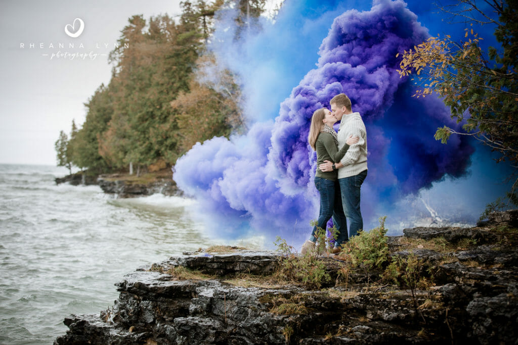 I first met Kayla and Nate a year ago when we starting talking about and planning for their 2020 wedding! It seemed like a while out when we first sat down, but now that a year has already gone by I know this upcoming year will be even quicker. During a consult we had, Kayla mentioned she really liked the idea of Door County as a backdrop for their photos. (I was thrilled about this because Door County is simply stunning and I couldn’t wait to get there for a session!) Then she asked if I was okay with smoke bombs. What?! Um…. YES!!! Please, let’s use smoke bombs!