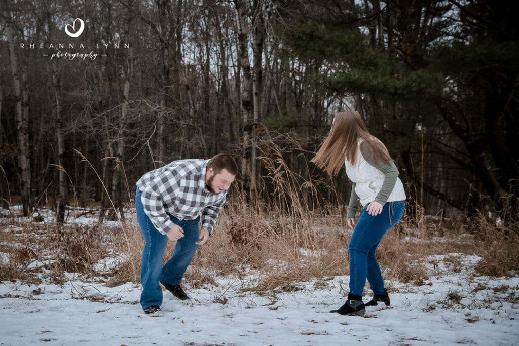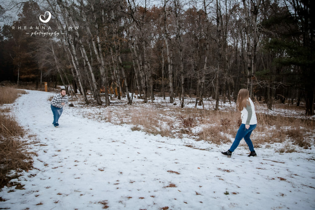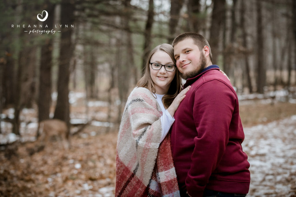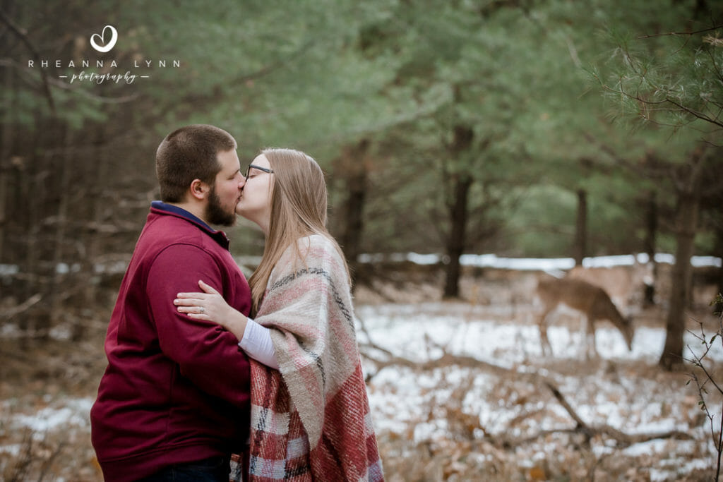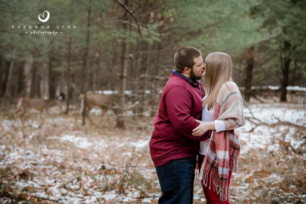 Tylor and Ryan planned for a fall engagement session- but winter came a bit early in Wisconsin this year! I actually love how their photos turned out- a little bit of snow, with a lotta bit of fall left, makes for a really unique backdrop! We strolled through the reserve talking about wedding day plans, tattoos, dinner plans, and sharing lots of belly laughs! Not five minutes into our session, we had a couple deer join us and actually follow us around while casually munching. It was fun to have them and they added whimsical touch to their already charming backdrop. We eventually found them comical as they followed us around- it was like they were insisting to help with the session and be in some photos!