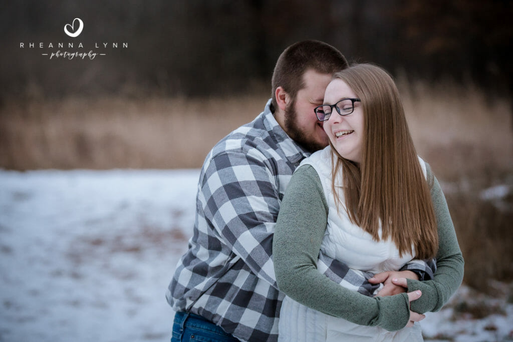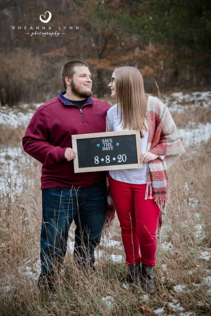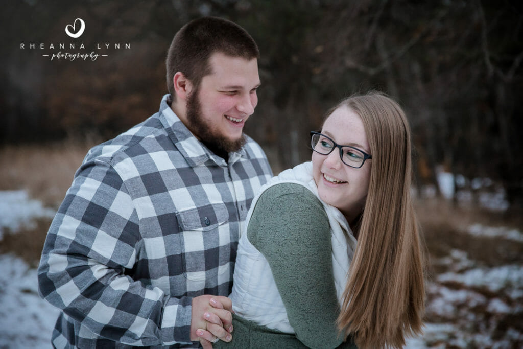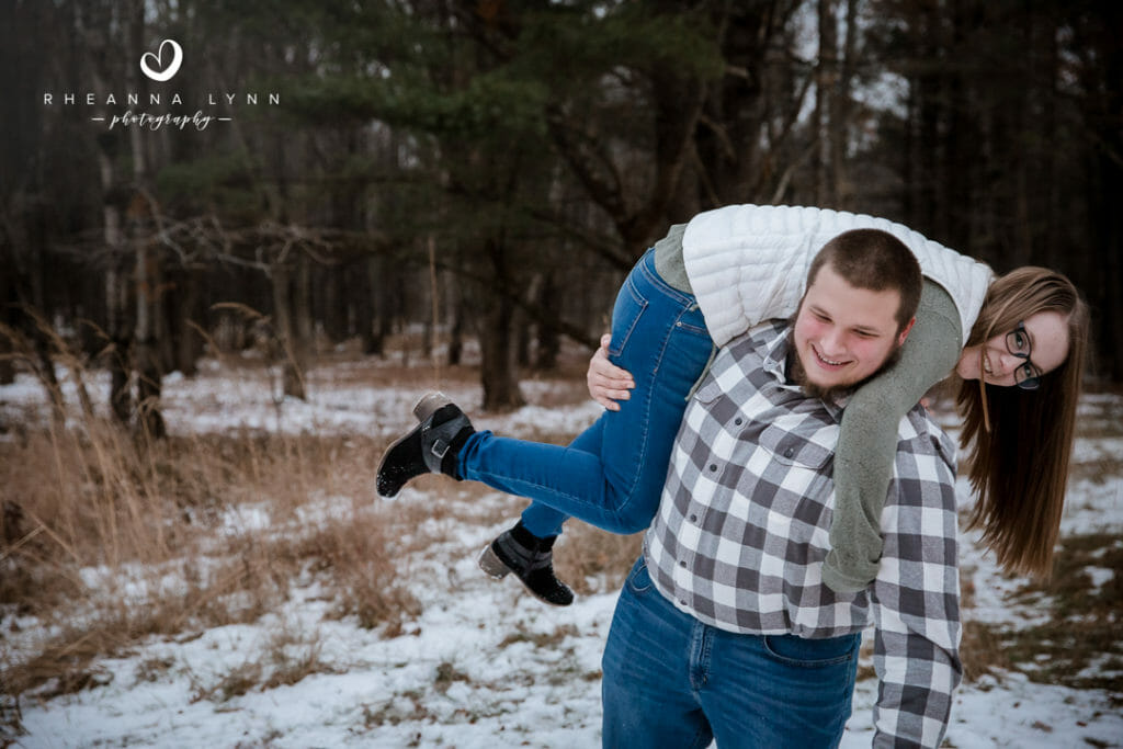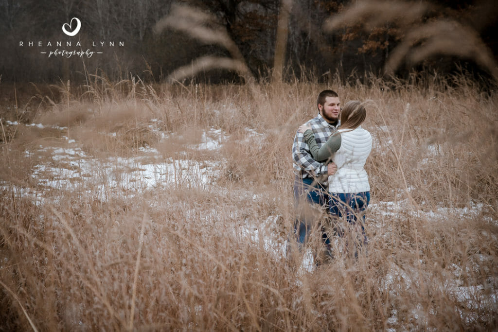 Tylor and Ryan planned for a fall engagement session- but winter came a bit early in Wisconsin this year! I actually love how their photos turned out- a little bit of snow, with a lotta bit of fall left, makes for a really unique backdrop! We strolled through the reserve talking about wedding day plans, tattoos, dinner plans, and sharing lots of belly laughs! Not five minutes into our session, we had a couple deer join us and actually follow us around while casually munching. It was fun to have them and they added whimsical touch to their already charming backdrop. We eventually found them comical as they followed us around- it was like they were insisting to help with the session and be in some photos!